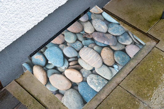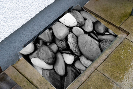 Lichtschachtabdeckung – Steine schwarz weiß