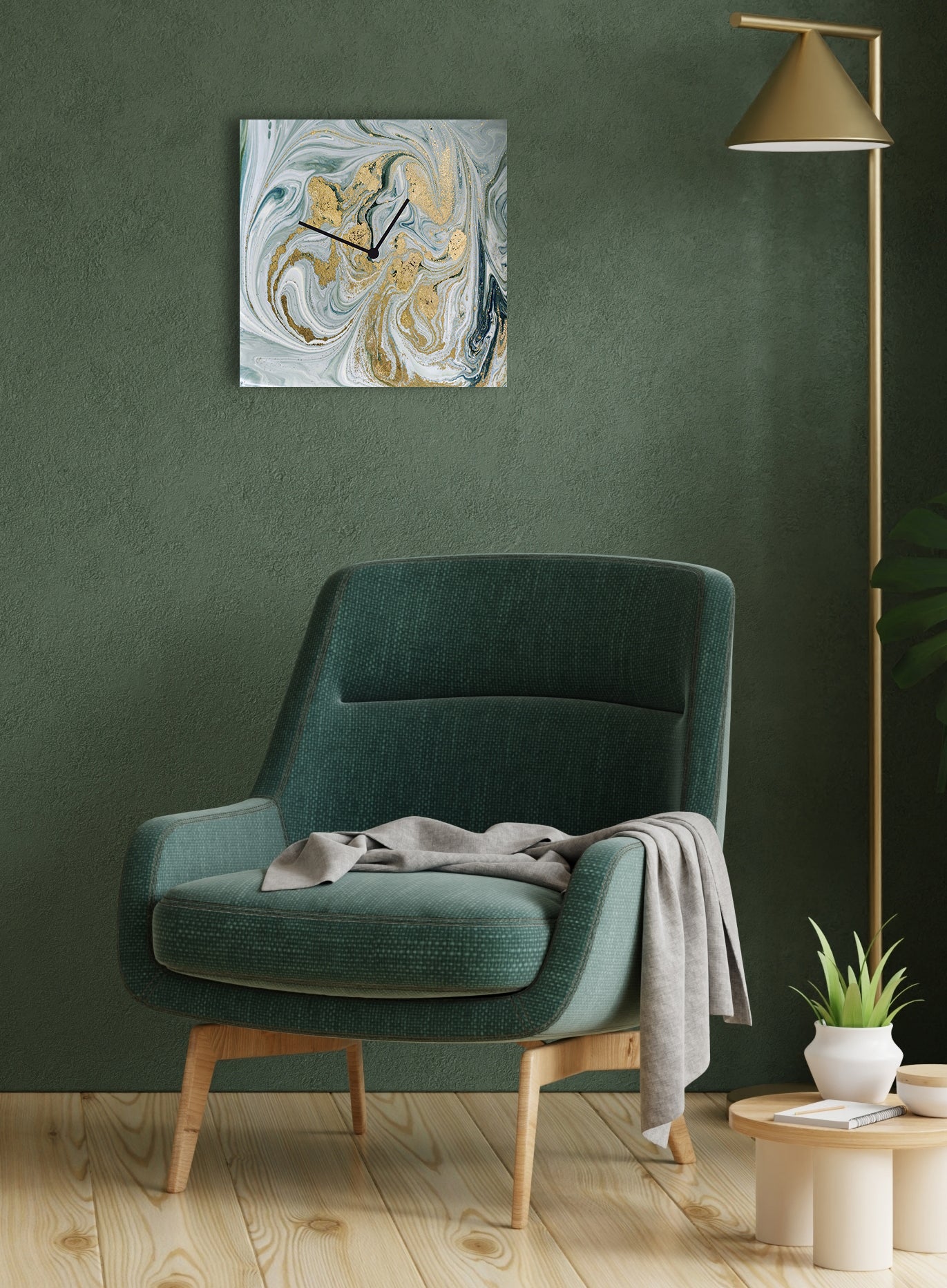 Erlebe zeitlose Eleganz mit der exklusiven Queence Uhr, veredelt mit Blattgold. Diese edle Wanduhr vereint Luxus und modernes Design, gefertigt aus 3 mm starkem Acrylglas für eine hochwertige Optik und Langlebigkeit. Das präzise Uhrwerk sorgt für eine zuverlässige Zeitangabe, während das goldene Finish jedes Interieur stilvoll aufwertet. Die Uhr ist batterie betrieben (Batterien nicht im Lieferumfang enthalten) und lässt sich mühelos anbringen. Ob als Highlight in Wohnräumen, Büros oder als edles Geschenk – mit Queence setzt du ein Statement in Sachen Luxus und Design.