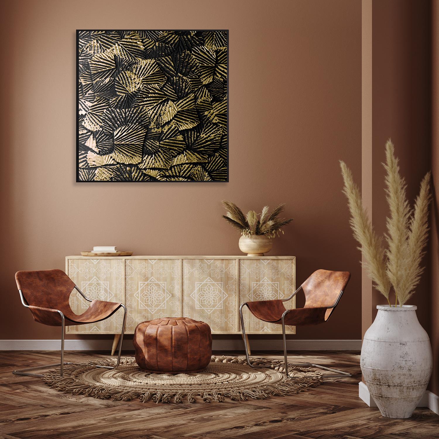 Leinwandbild mit Schattenfugenrahmen - Goldene Blätter