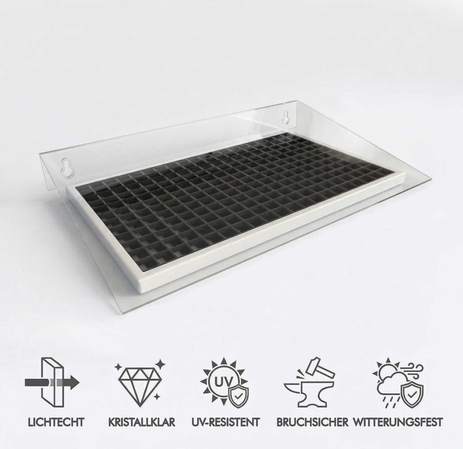Robust & langlebig: 4 mm starkes, UV-beständiges Acrylglas.
