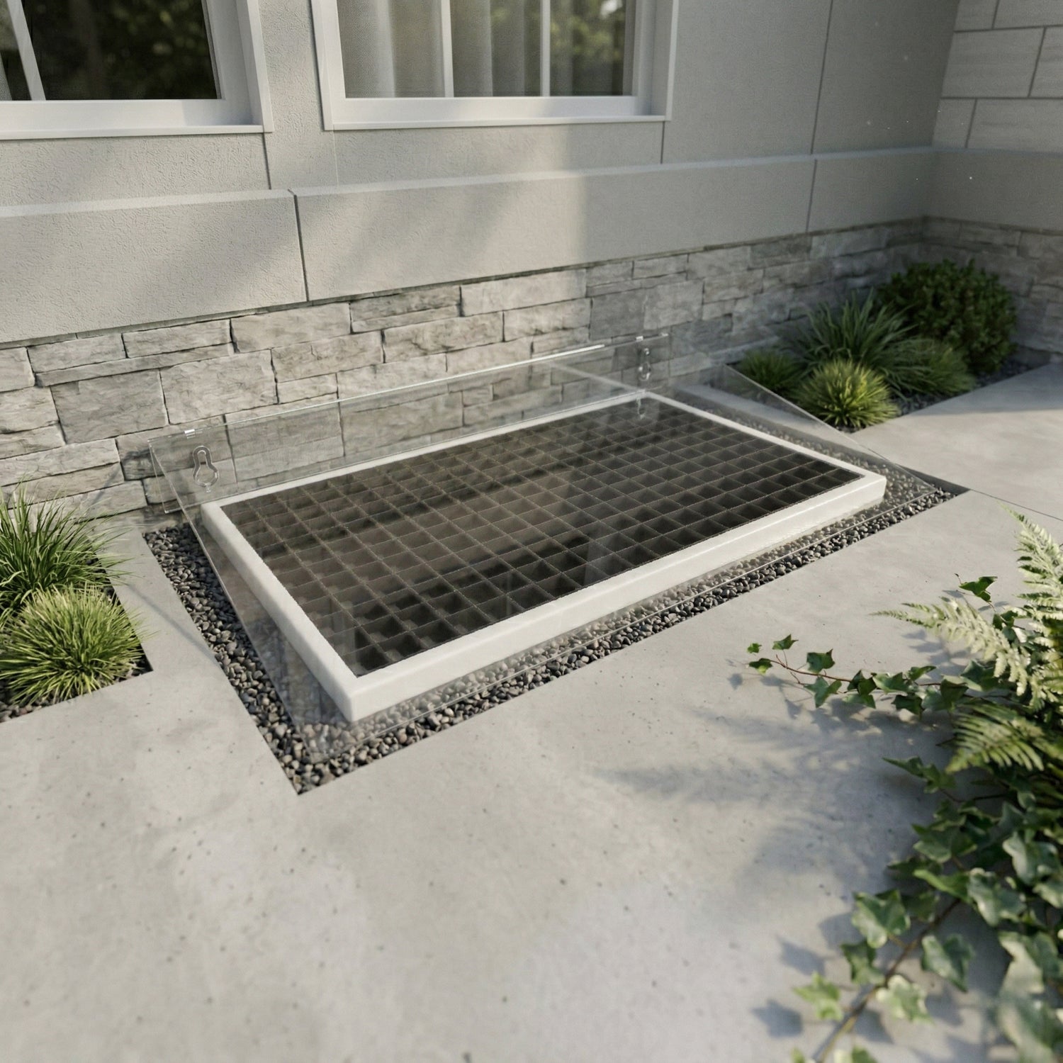 Im Vergleich zu herkömmlichen Lichtschachtabdeckungen punktet die Acryl- Lichtschachtabdeckung durch ihr klares und modernes Design. Sie fügt sich harmonisch in jede Umgebung ein und sorgt gleichzeitig dafür, dass Dein Kellerschacht zuverlässig geschützt ist. Das minimalistische Design lässt Dein Haus moderner wirken und wertet den Außenbereich Deines Hauses auf, ohne dabei aufdringlich zu sein.
