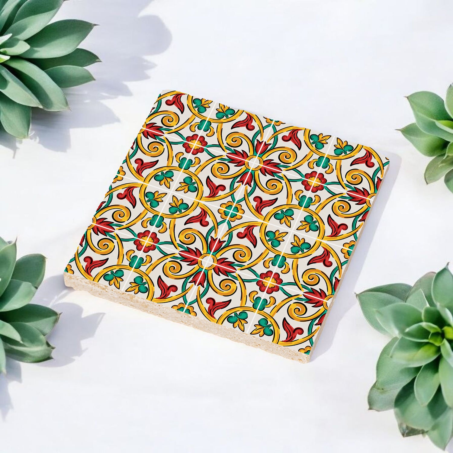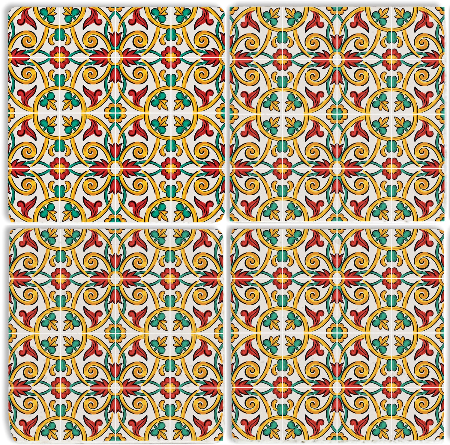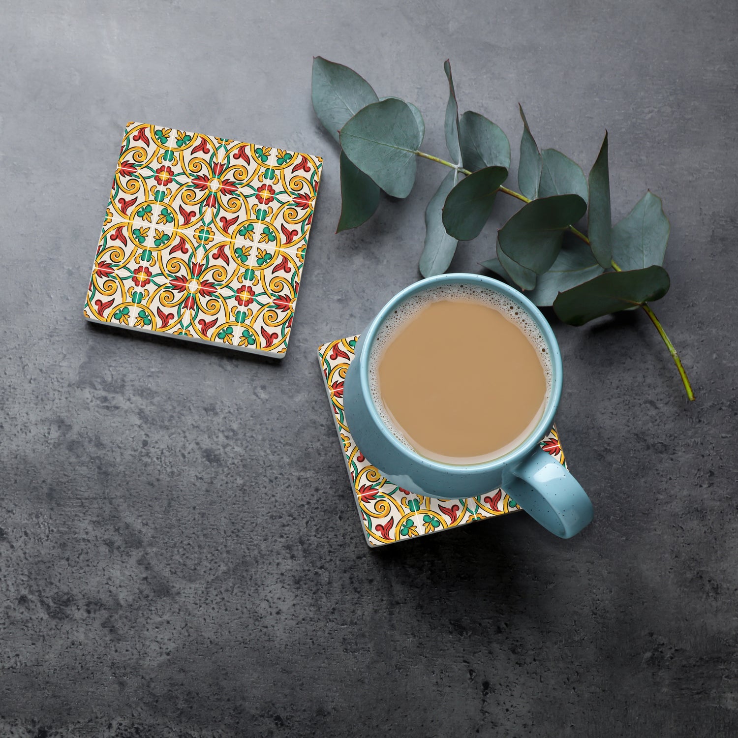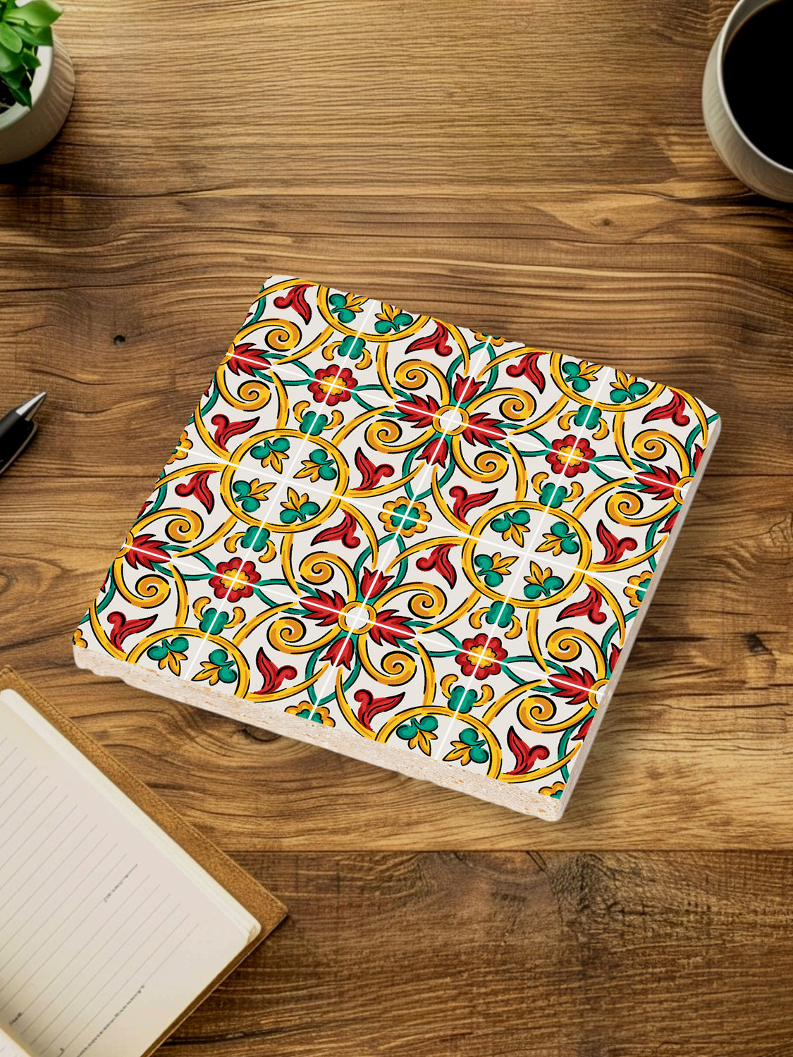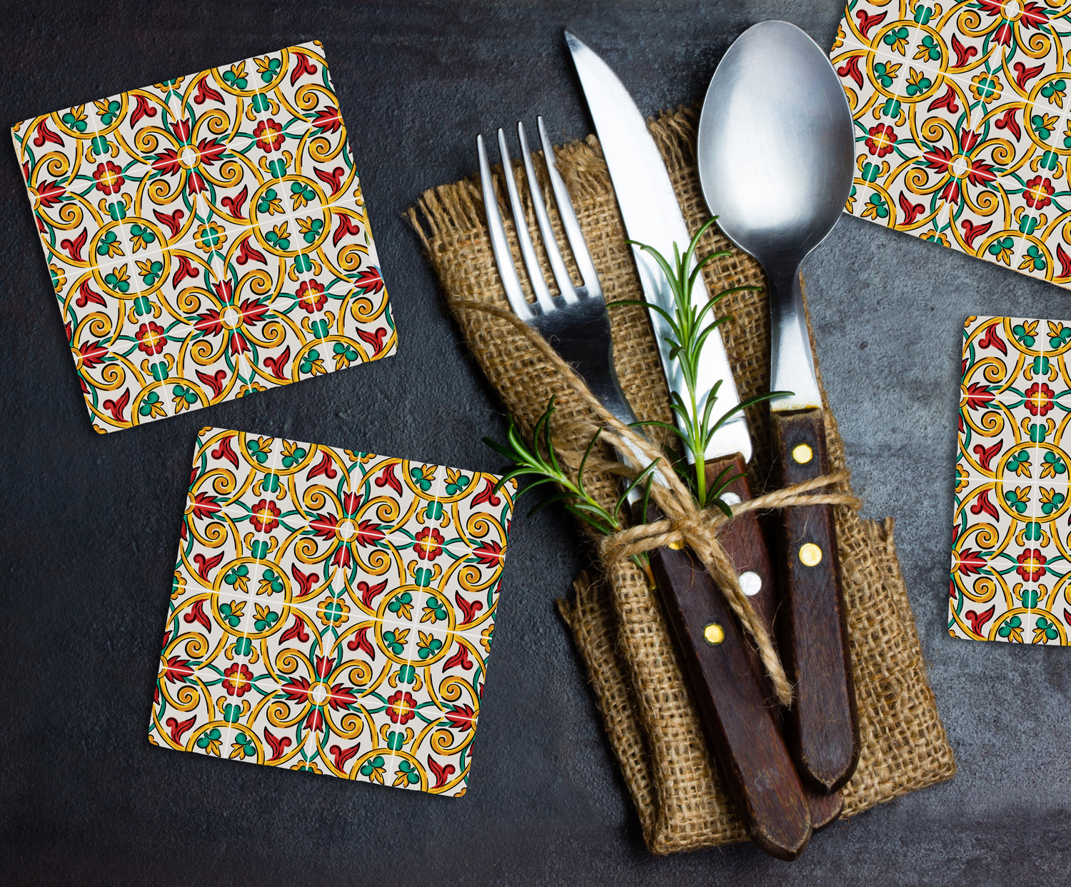 Steinuntersetzer-Set - Grüne und Rote Ornamente