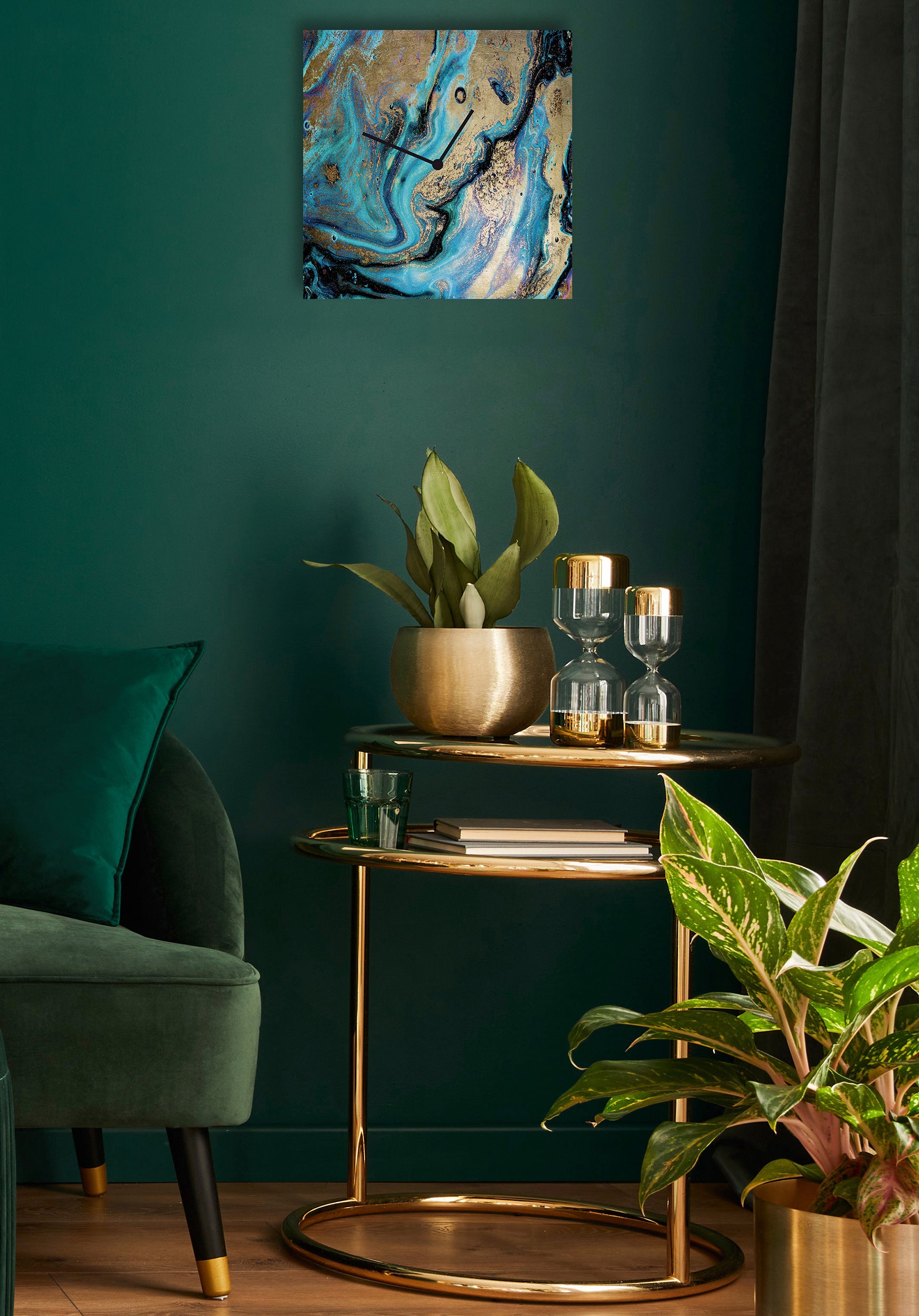 Erlebe zeitlose Eleganz mit der exklusiven Queence Uhr, veredelt mit Blattgold. Diese edle Wanduhr vereint Luxus und modernes Design, gefertigt aus 3 mm starkem Acrylglas für eine hochwertige Optik und Langlebigkeit. Das präzise Uhrwerk sorgt für eine zuverlässige Zeitangabe, während das goldene Finish jedes Interieur stilvoll aufwertet. Die Uhr ist batterie betrieben (Batterien nicht im Lieferumfang enthalten) und lässt sich mühelos anbringen. Ob als Highlight in Wohnräumen, Büros oder als edles Geschenk – mit Queence setzt du ein Statement in Sachen Luxus und Design.