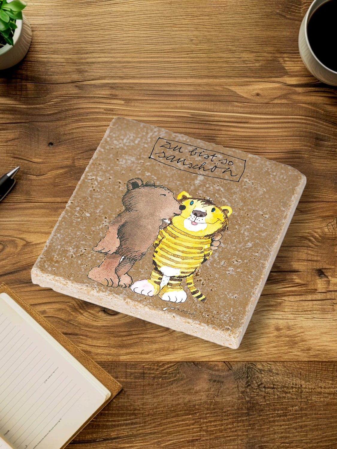 Unsere hochwertigen Naturstein-Untersetzer im 4er-Set sind nicht nur praktisch, sondern auch echte Design-Highlights! Ab sofort sind sie auch in einzigartigen Tigerenten-Motiven von Janosch erhältlich – charmant, verspielt und unverwechselbar.