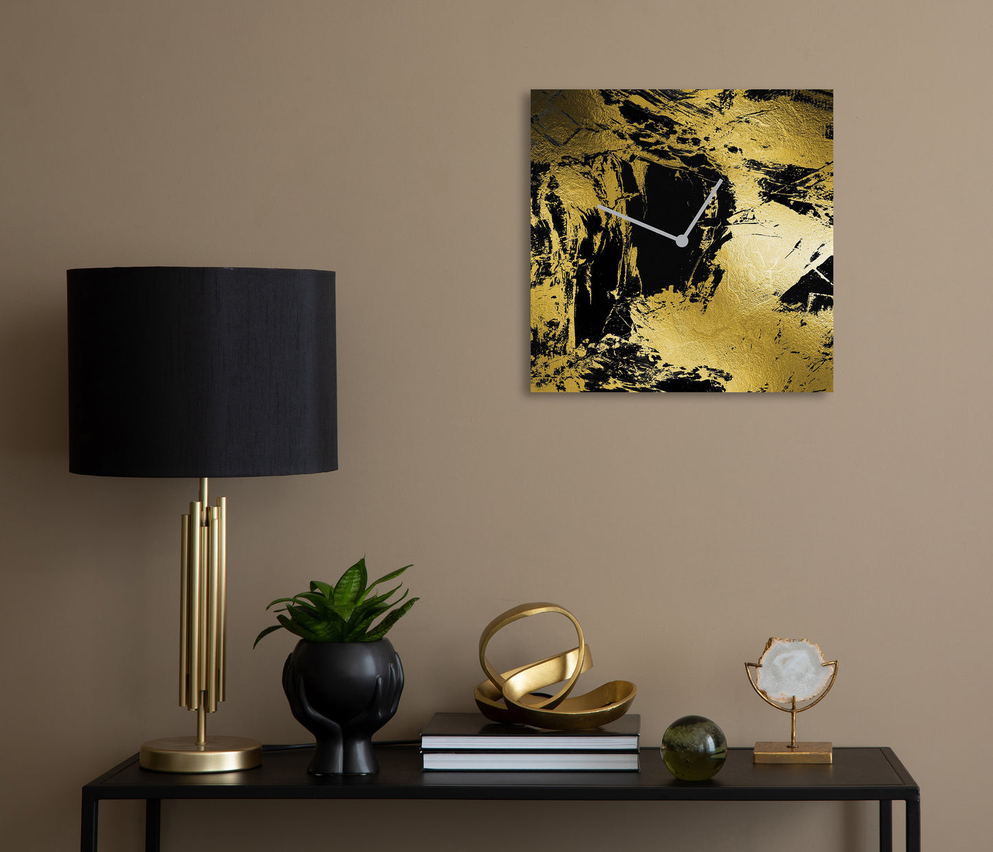 Erlebe zeitlose Eleganz mit der exklusiven Queence Uhr, veredelt mit Blattgold. Diese edle Wanduhr vereint Luxus und modernes Design, gefertigt aus 3 mm starkem Acrylglas für eine hochwertige Optik und Langlebigkeit. Das präzise Uhrwerk sorgt für eine zuverlässige Zeitangabe, während das goldene Finish jedes Interieur stilvoll aufwertet. Die Uhr ist batterie betrieben (Batterien nicht im Lieferumfang enthalten) und lässt sich mühelos anbringen. Ob als Highlight in Wohnräumen, Büros oder als edles Geschenk – mit Queence setzt du ein Statement in Sachen Luxus und Design.