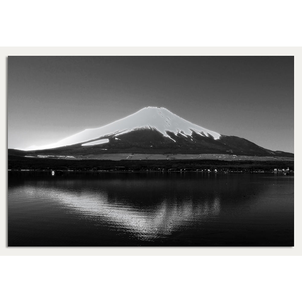 In the production of the Alu-Dibond wall pictures White areas are deliberately left out to create the metal effect . Our aluminum picture shows Mount Fuji in black and white, surrounded by a glittering landscape. The high-quality aluminum guarantees a modern look and durability.