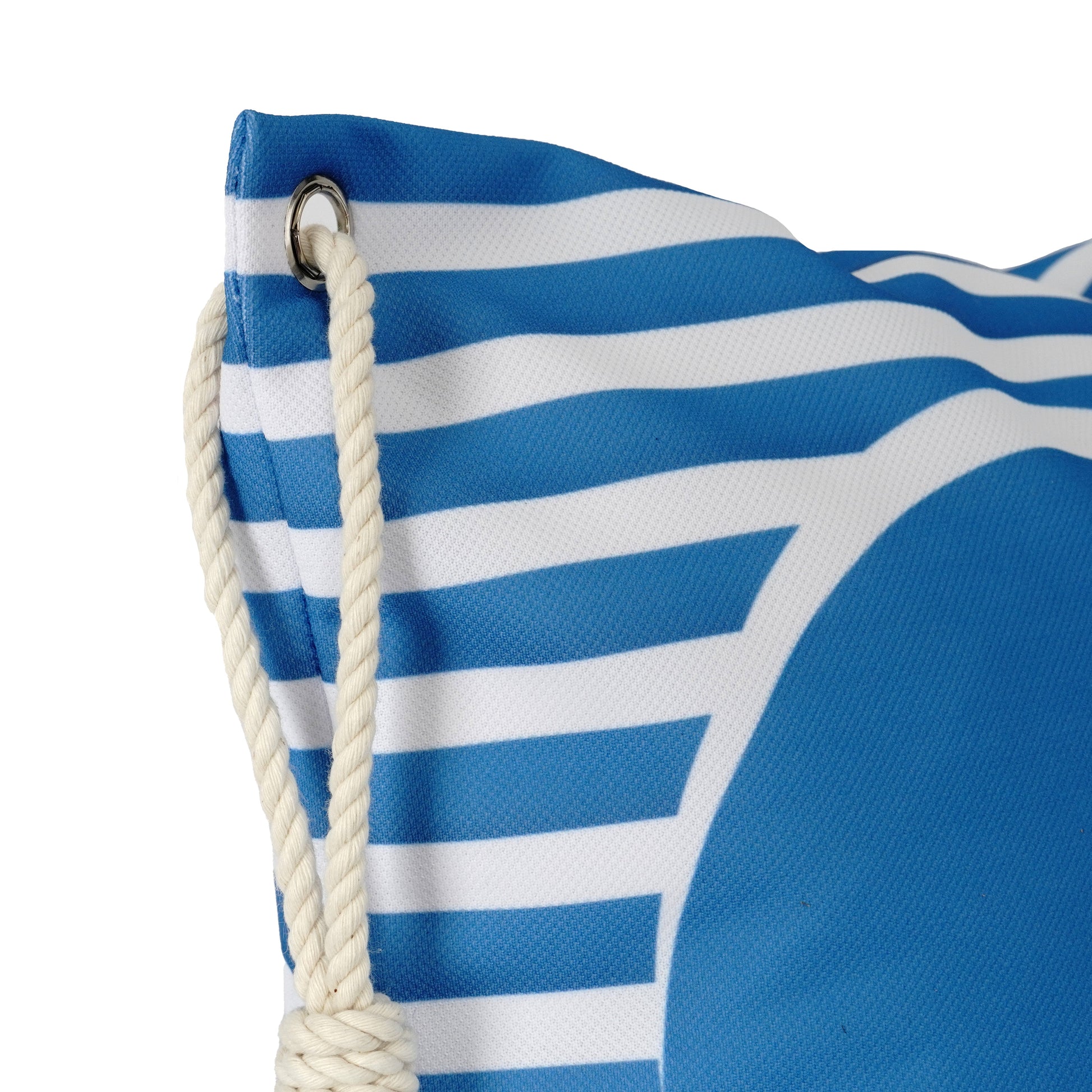 Besonderes Highlight: Die Kissenhülle ist mit einer markanten Öse und einer dicken Stoff-Kordel ausgestattet, was ihr einen maritimen und hochwertigen Look verleiht.