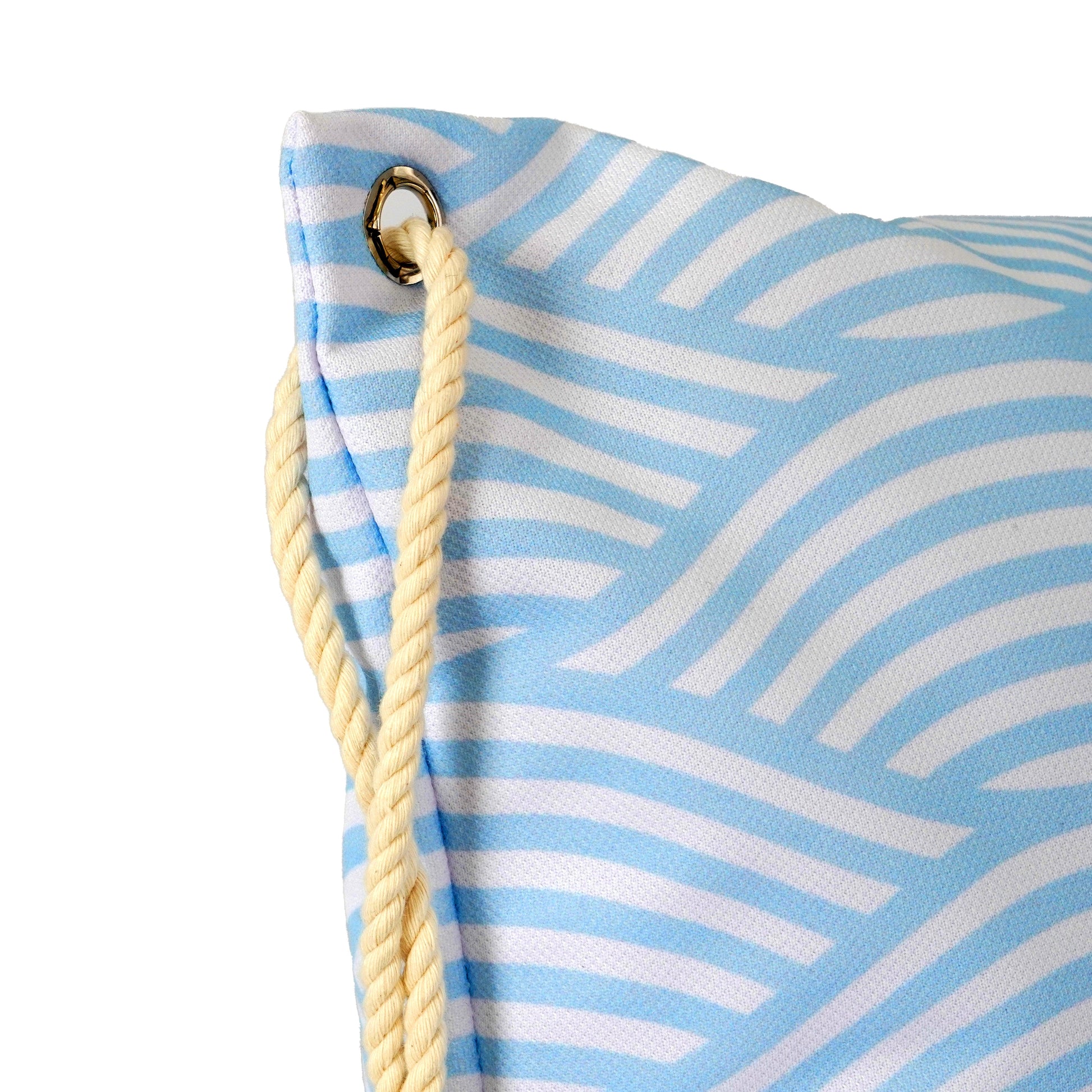 Besonderes Highlight: Die Kissenhülle ist mit einer markanten Öse und einer dicken Stoff-Kordel ausgestattet, was ihr einen maritimen und hochwertigen Look verleiht.