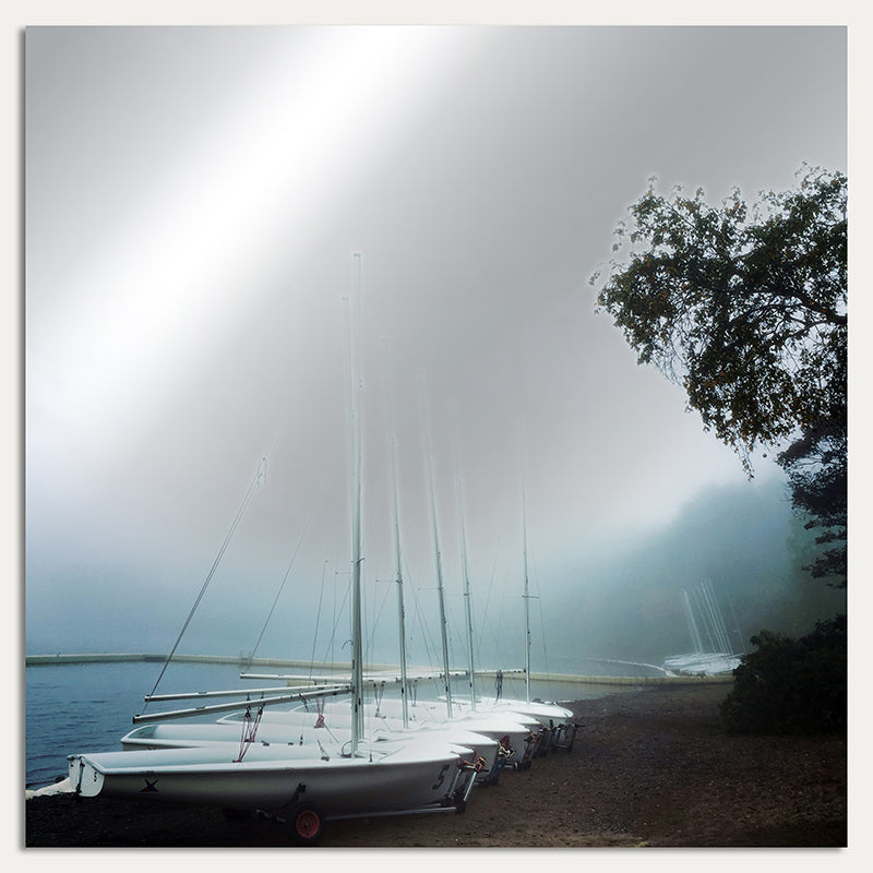 Our foggy aluminum picture shows an idyllic pier with sailing boats. The high-quality aluminum ensures a modern look and durability, while the motif creates a calming atmosphere.