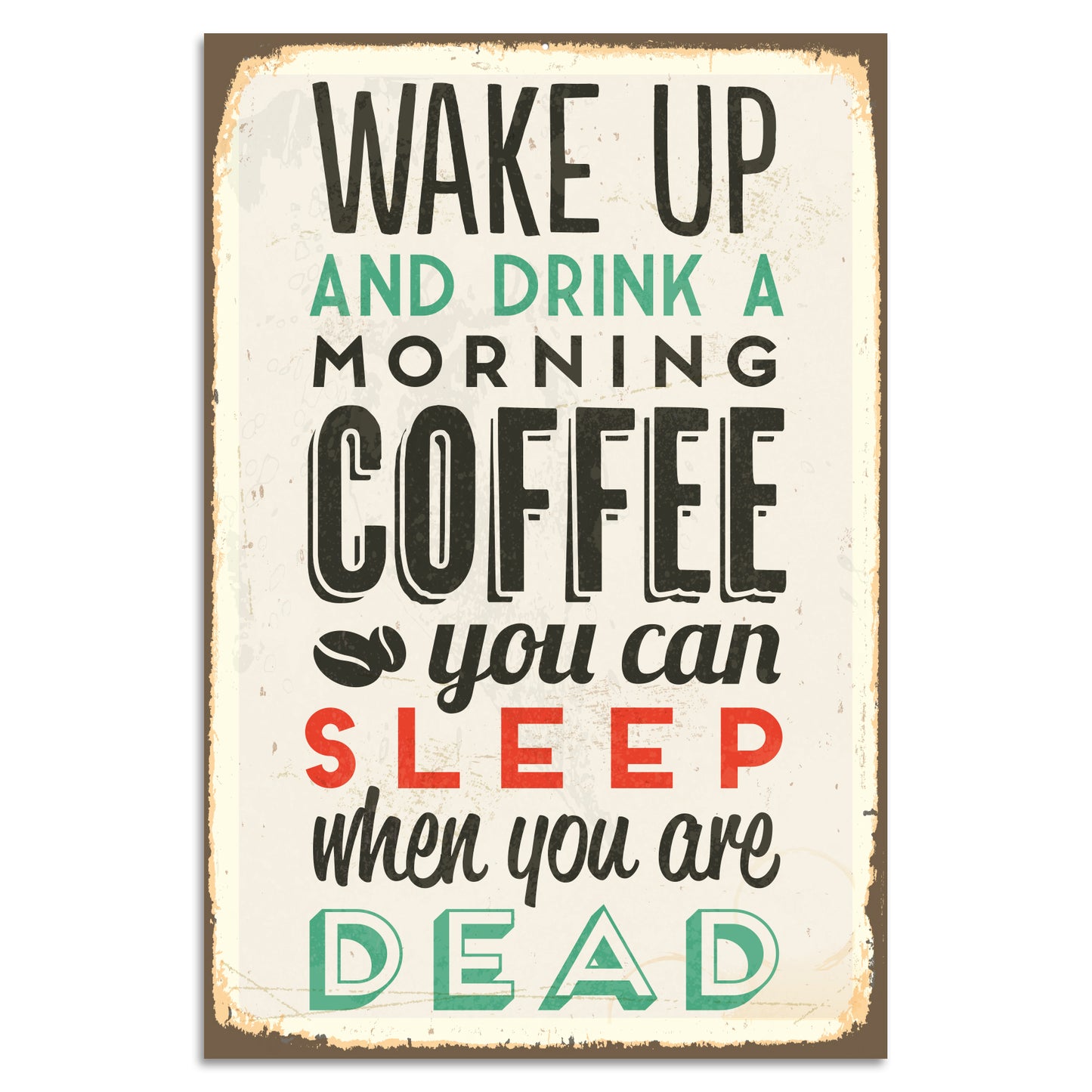 Tin Sign Wake Up And Drink A Morning Coffee - You Can Sleep When You Are Dead 20x30cm